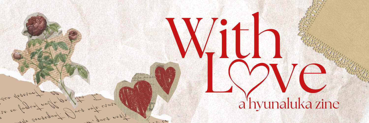 Suggestive themes may be allowed upon consultation with the Mods, but in general, please ensure it is kept to a minimum! If you can't show it to your grandma without doing some explaining, the subject matter may not be suitable for this zine.You are welcome to include other ALNST characters in your work; however, as this zine is centered on Hyuna and Luka's romance, please keep Hyuluka as the main focus!